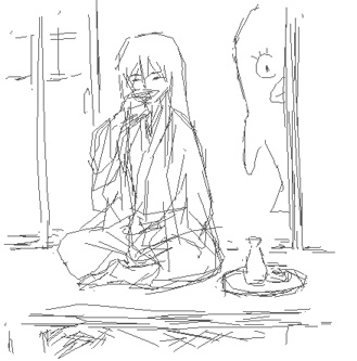 ひとり酒の桂さんを描いてると、若○さん、ご入室。
