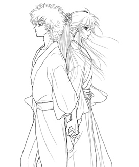 ベタ塗ったり着物に色柄入れたりして、キャラ絵部分できあがり。